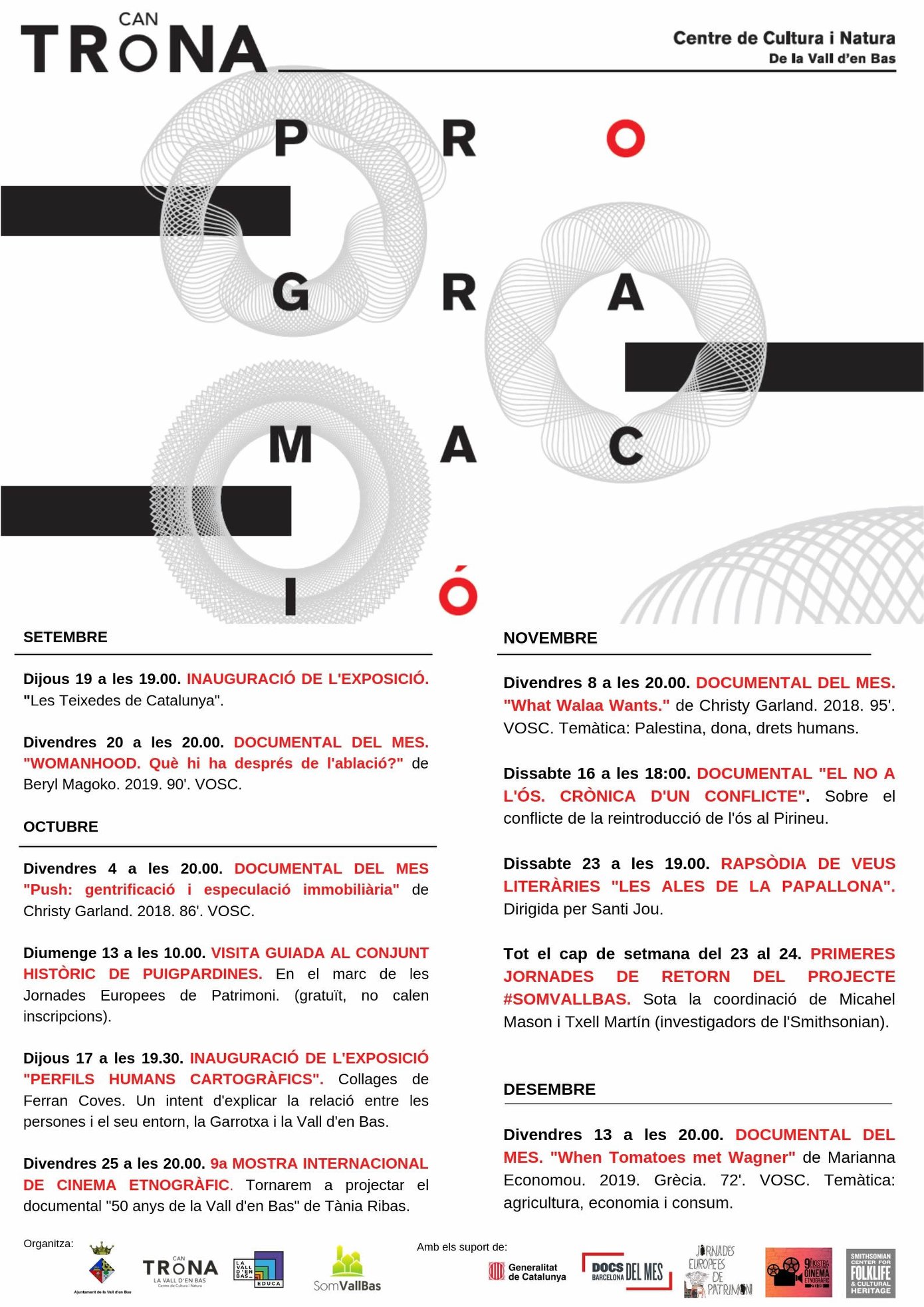 Amb l’arribada del mes de desembre, Can Trona presenta una agenda cultural farcida de tradicions, activitats nadalenques i propostes per gaudir en família. Aquest mes podreu descobrir el documental del mes, visitar la Fira de Sant Nicolau, aprendre noves tècniques en tallers creatius, assistir a concerts de Nadal i gaudir de cinema infantil, entre moltes […]