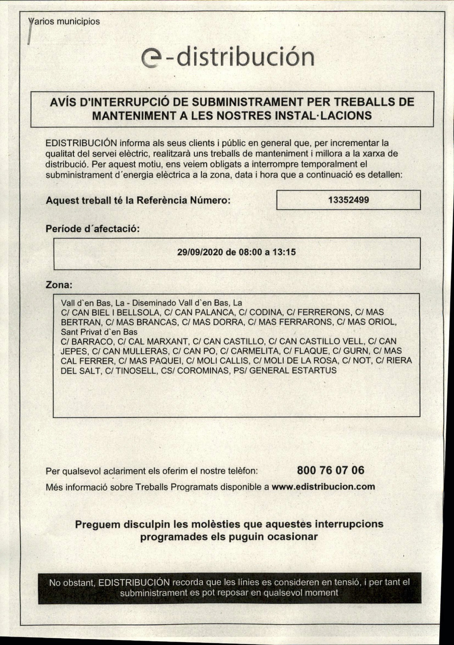 El canal de Telegram que t'informa de les incidències al municipi. Segueix-nos!