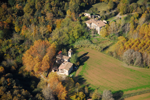 Poc abans d’arribar al petit nucli de Puigpardines, un caminet s’enfila cap a dalt d’un turó, on en mig de bonics prats hi presideix l’esglesiola. La primera notícia documentada data de l’any 1396.