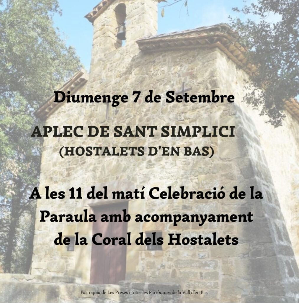 Aquest diumenge 7 de setembre se celebraran l’Aplec de les Olletes i l’Aplec de Sant Simplici.