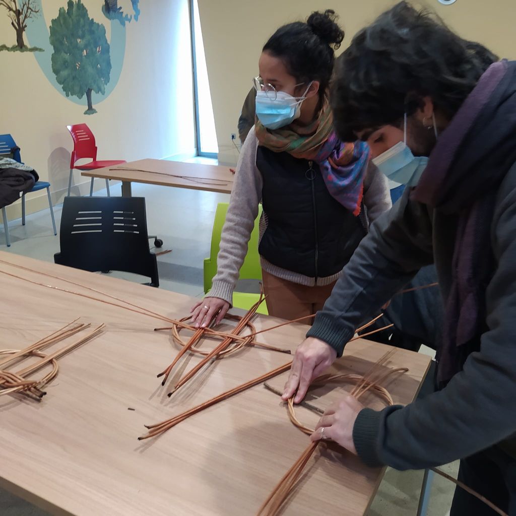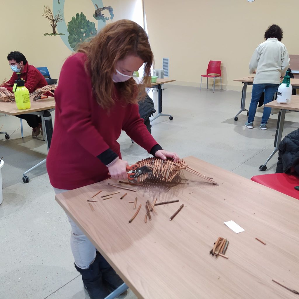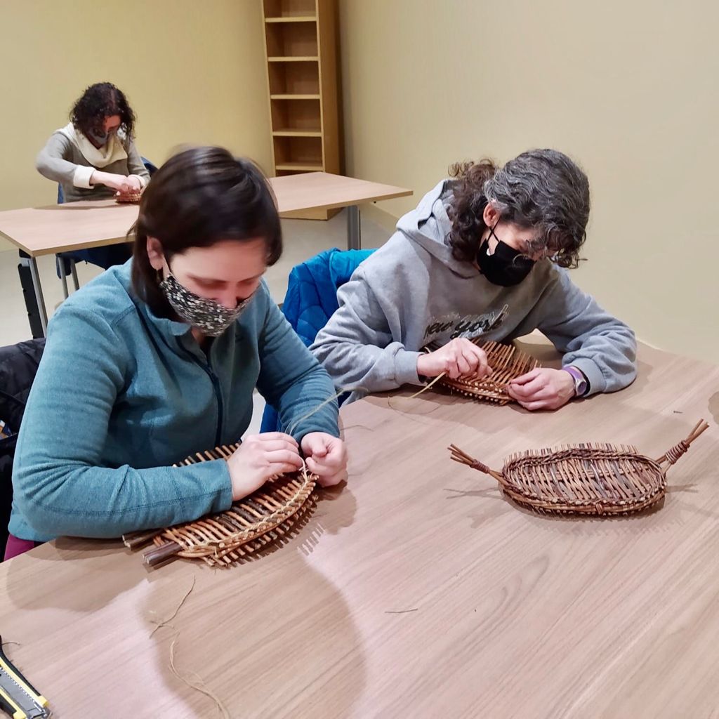 El mateix dissabte, i paral·lelament al que passava a l’auditori, a l’aula pedagògica del mateix centre de cultura i natura es van dur a terme dues sessions, de deu persones cadascuna, d’un taller de vímet i fibres vegetals amb l’artesana i escultora Ona Trepat. Es tracta de la primera activitat d’un cicle de tres tallers, amb els quals es pretén reivindicar la cultura popular, l’artesania i la necessitat de retornar als orígens i d’apostar per a un desenvolupament sostenible. I és que si es va decidir començar amb una classe per aprendre a trenar vímet fou perquè es tracta d’una tècnica que molt poques persones coneixen i que es podria considerar patrimoni immaterial, però també perquè els recipients d’aquests tipus: cistells, safates, porta ampolles, poden ser uns grans substituts de les bosses i els recipients de plàstic.
