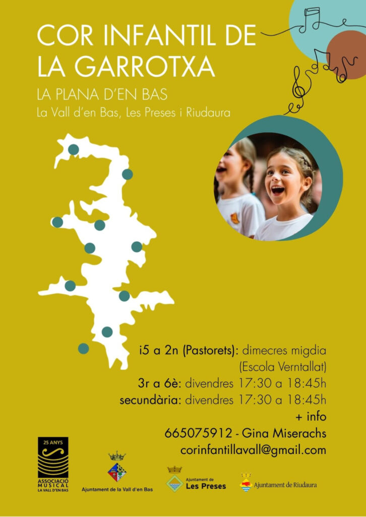 El Cor Infantil de la Garrotxa – Plana d’en Bas és una proposta oberta a tots els infants que vulguin descobrir el plaer de cantar i viure la música en comunitat. El projecte neix amb la voluntat de ser un espai educatiu i cultural on la música es converteix en eina d’expressió, cohesió i creixement personal.
