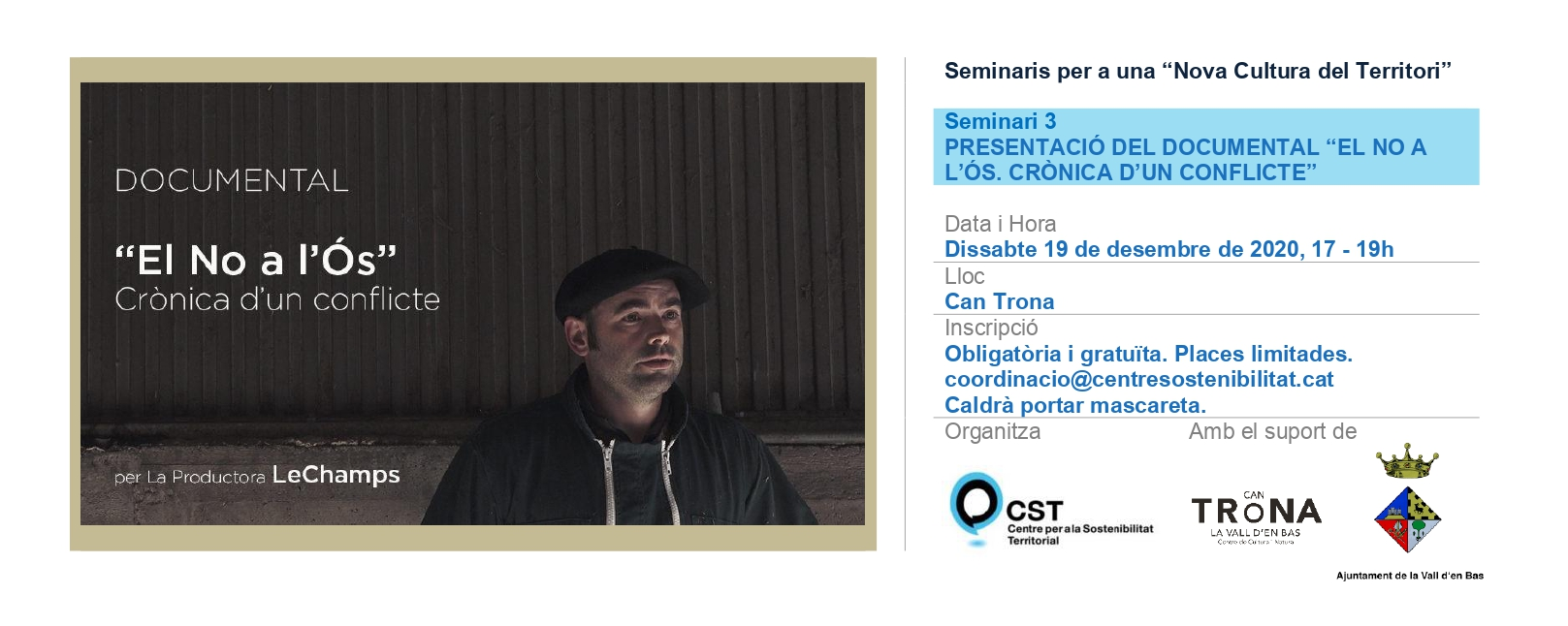 El tercer i últim seminari del cicle consistirà en la presentació del documental ‘El no a l’ós? Crònica d’un conflicte’ que tindrà lloc el 19 de desembre.