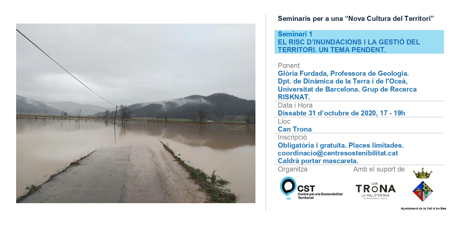 El primer seminari serà el dissabte 31 d’octubre i parlarà sobre ‘El risc d’inundacions i la gestió del territori. Un tema pendent’.