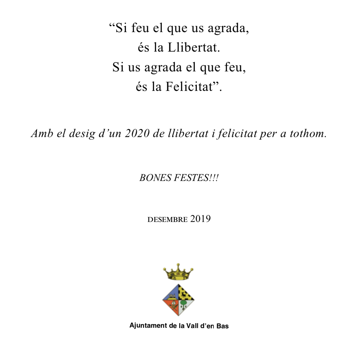 L’Ajuntament de la Vall d’en Bas us desitja unes Bones Festes!
