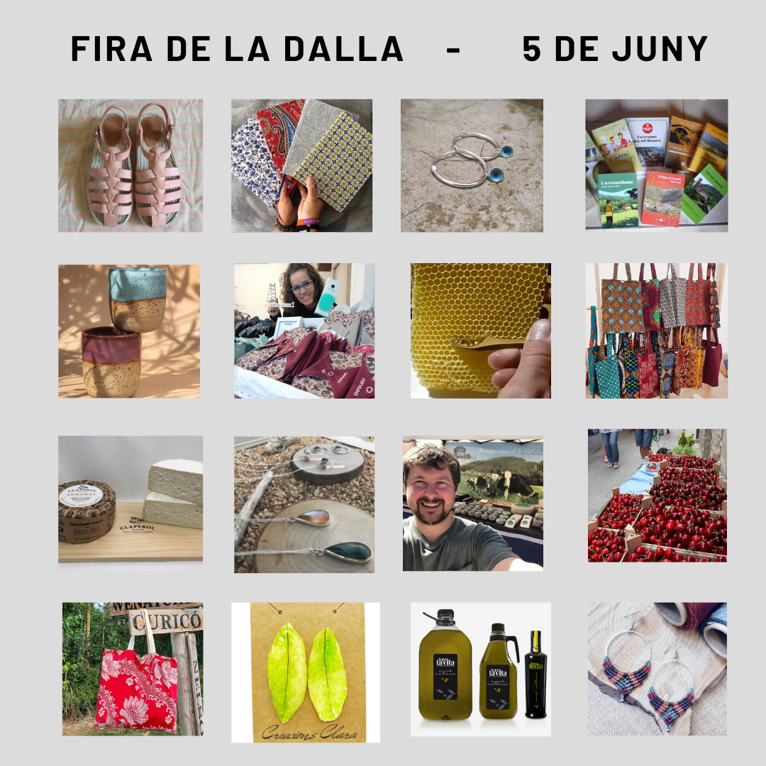 Els visitants hi podran trobar una vintena de parades on podran adquirir: oli i vi artesà de Terra La Vita; formatges de Mas Vigatà; formatges artesans d’importació; formatges Claperol, mel Puigsacalm, vi i cervesa artesana a la parada de l’Àngel Reif; sandàlies d’espart fetes a mà per la Begoña Morado; llibres relacionats amb l’àmbit rural de la Tradillibreria i d’en Josep de Sora; joies de l’artesana Anna Tapias; complements fets amb flors seques de la Clara Casanovas; bosses de tela de la Luana Alvarado; llibretes folrades amb teles de colors de la marca Turuqua; aquarel·les de l’artista Yolanda González, joies fetes amb macramé de l’Estíbaliz Rodríguez, així com les joies artesanes de la Mireia Ortega.