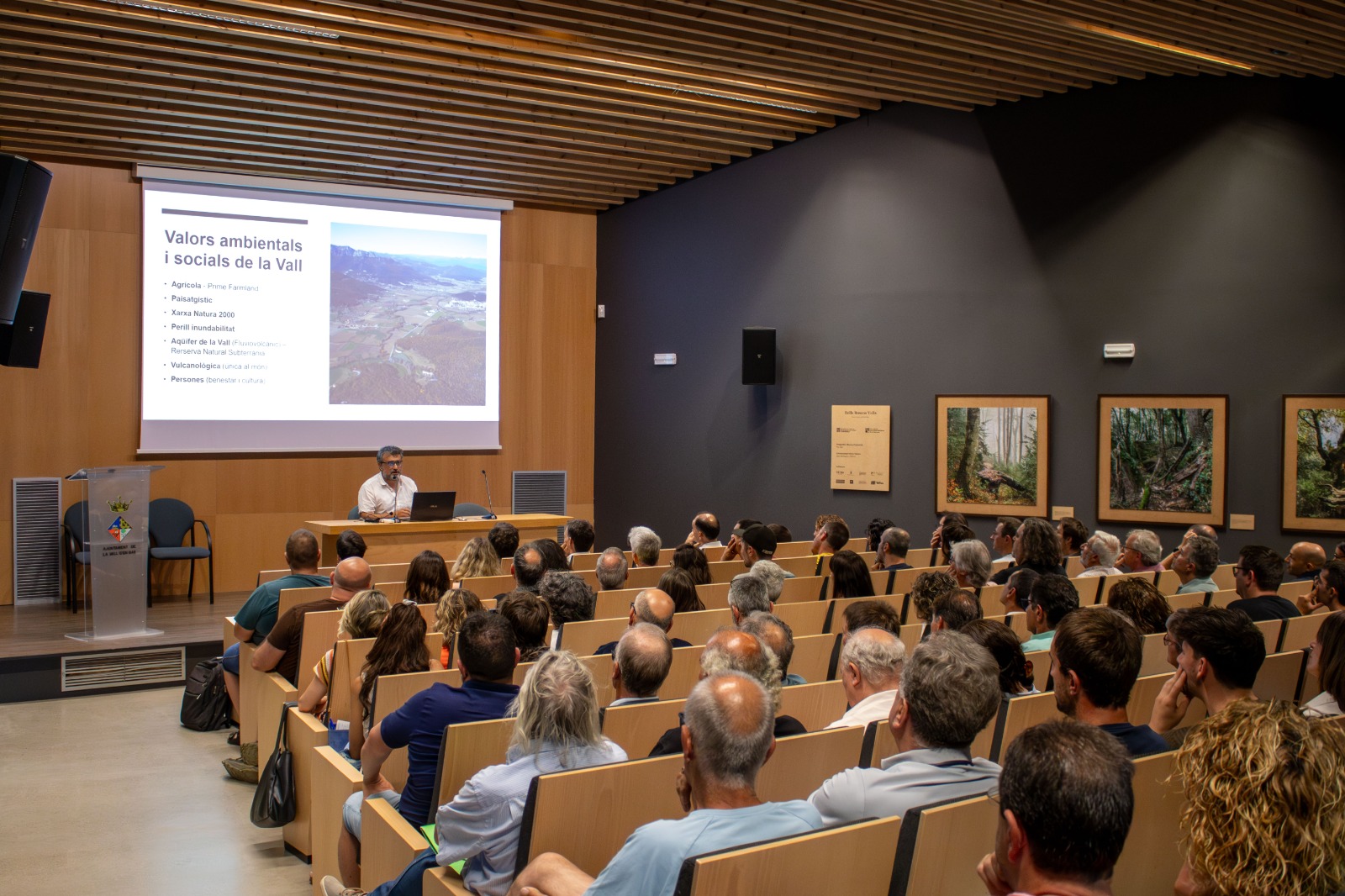 Tot seguit, el geòleg Llorenç Planagumà va oferir la conferència “Implicacions hidrogeològiques del projecte de la variant de la Vall d’en Bas”, on va presentar el seu anàlisi dels riscos que pot comportar l’actual traçat del projecte sobre aquest territori tan singular.