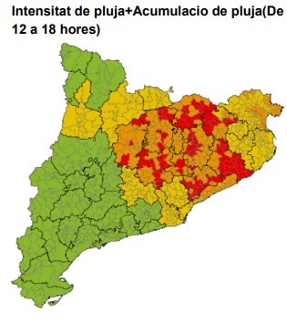Segons informa el Servei Meteorològic de Catalunya (SMC), es preveu que a partir de demà (dia 23) al matí es pugui superar el llindar d’intensitat de pluja de 40 mm en 30 minuts a la meitat Nord de Catalunya i comarques de Tarragona.
