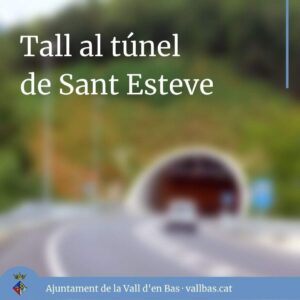Us informem que aquest dimecres 29 d’octubre hi haurà restriccions de trànsit a la C-63, al túnel de Sant Esteve d’en Bas. L’afectació obligarà a tancar el túnel entre el PK 66+085 i el PK 68+250 des de les 8 h fins a les 16 h, en tots dos sentits de la marxa, per dur a terme tasques de manteniment preventiu dels sensors.