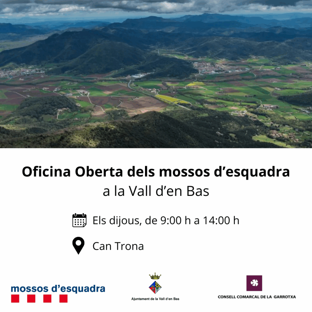 Amb motiu de la Diada Nacional de Catalunya, el pròxim dijous 11 de setembre l’Oficina Oberta dels Mossos d’Esquadra romandrà tancada. L’atenció al públic es reprendrà el dijous 18 de setembre, en l’horari habitual.